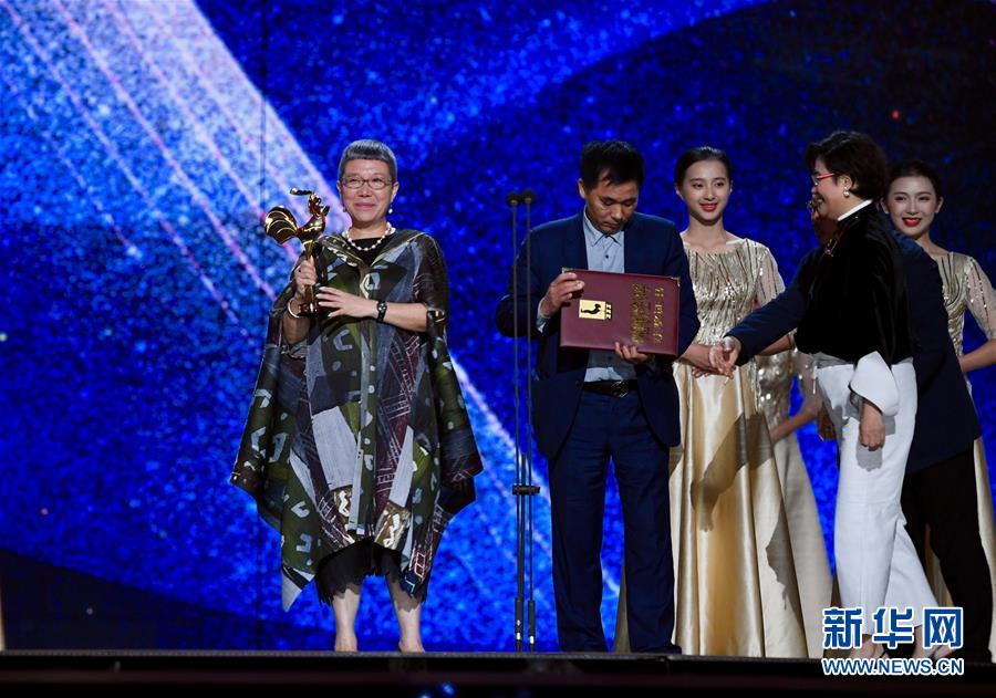 11月23日,電影《地久天長》主演詠梅獲得最佳女主角獎。當日,第32屆中國電影金雞獎頒獎典禮在福建廈門舉行。新華社記者姜克紅攝