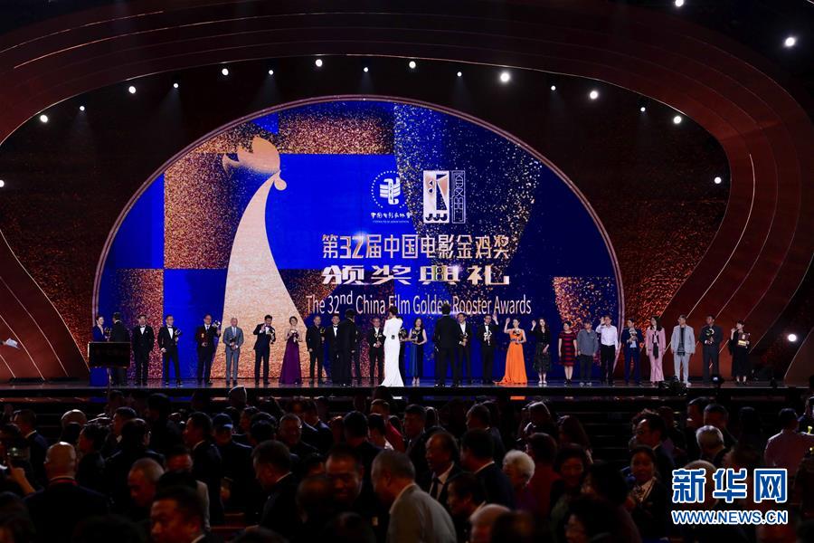 11月23日,獲獎者在頒獎典禮上合影。當日,第32屆中國電影金雞獎頒獎典禮在福建廈門舉行。新華社記者姜克紅攝