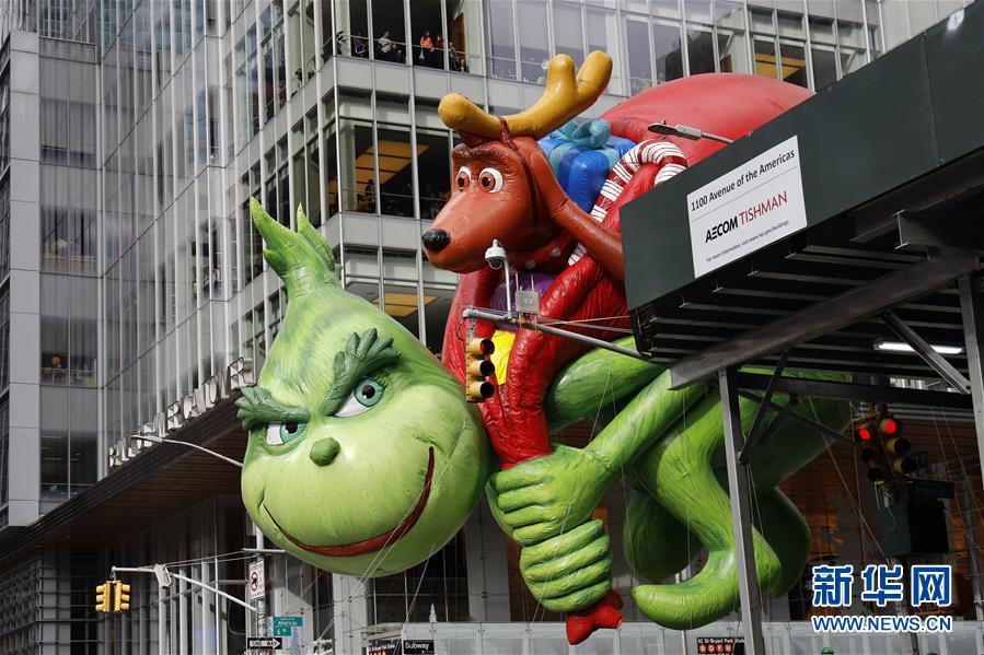 11月28日,在美國紐約舉行的感恩節大游行上,卡通氣球行進在曼哈頓街頭。 新華社記者 李木子 攝