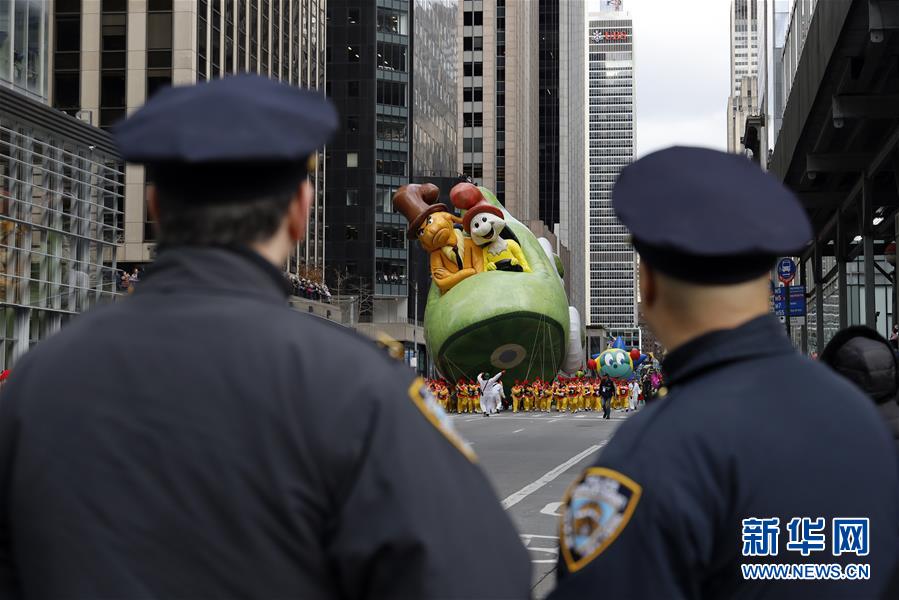 11月28日,在美國紐約舉行的感恩節大游行上,卡通氣球行進在曼哈頓街頭。 新華社記者 李木子 攝