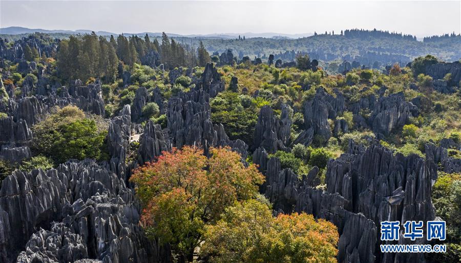 11月28日,空中俯瞰石林景區(qū)(無(wú)人機(jī)拍攝)。新華社記者江文耀攝