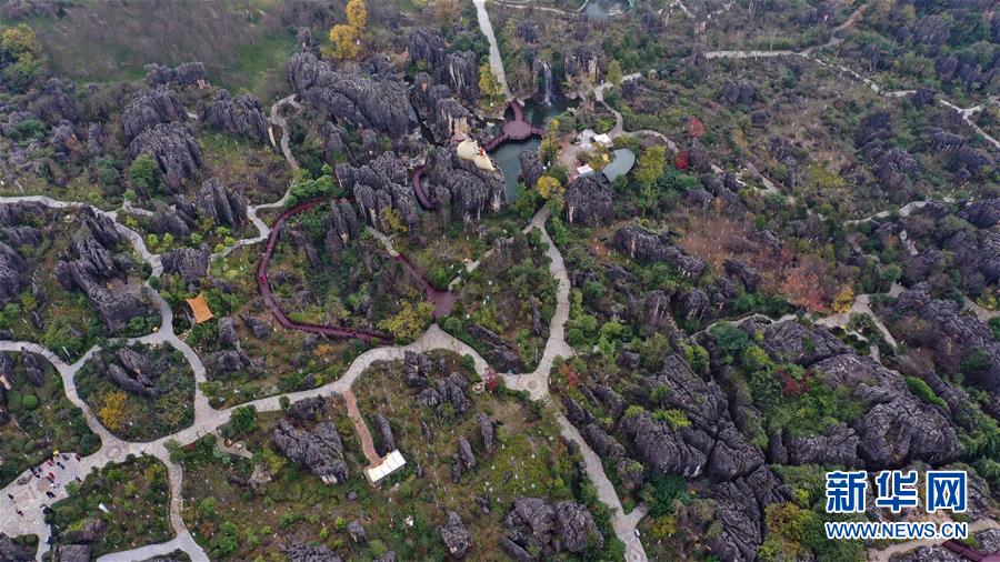 這是云南石林彝族自治縣黑石箐石林景觀(11月28日無人機拍攝)。新華社記者胡超攝