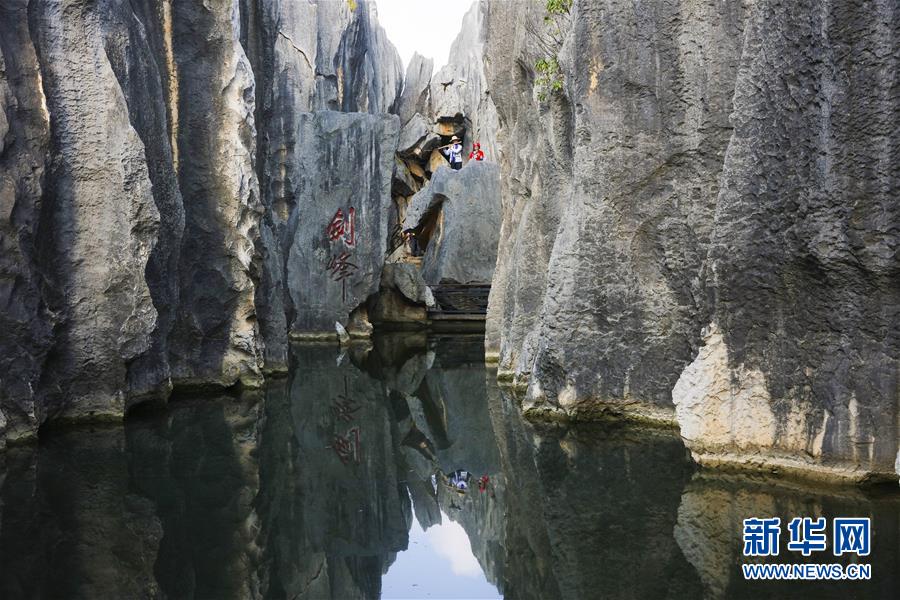 石林景區劍鋒池景色(11月27日攝)。新華社記者蘭紅光攝