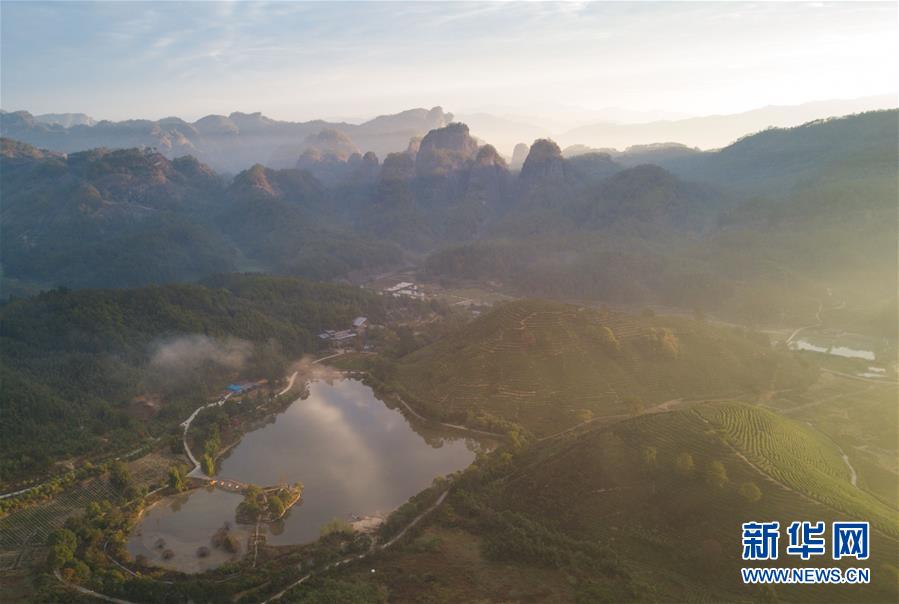這是武夷山日出后的田園風光(11月17日無人機拍攝)。新華社記者宋為偉攝