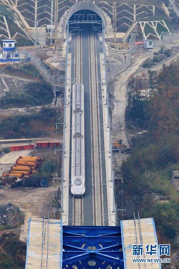 12月2日,一輛試驗列車駛過成貴高鐵鴨池河特大橋。當日,正在進行聯調聯試的成貴高鐵進入全線拉通空載模擬運行階段,試驗列車將在成都到貴陽區間內全線路運行。線路全長650公里的成貴高鐵是我國“八縱八橫”高速鐵路網的重要組成部分,設計時速為250公里。新華社記者劉續攝