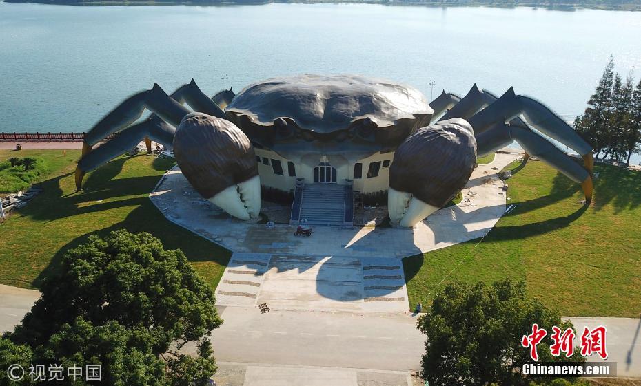 據了解,這是建造中的大閘蟹生態館,預計未來將在大閘蟹的白肚內容納三層空間,集休閑、娛樂,以及有關大閘蟹體驗于一體的設施。圖片來源:視覺中國