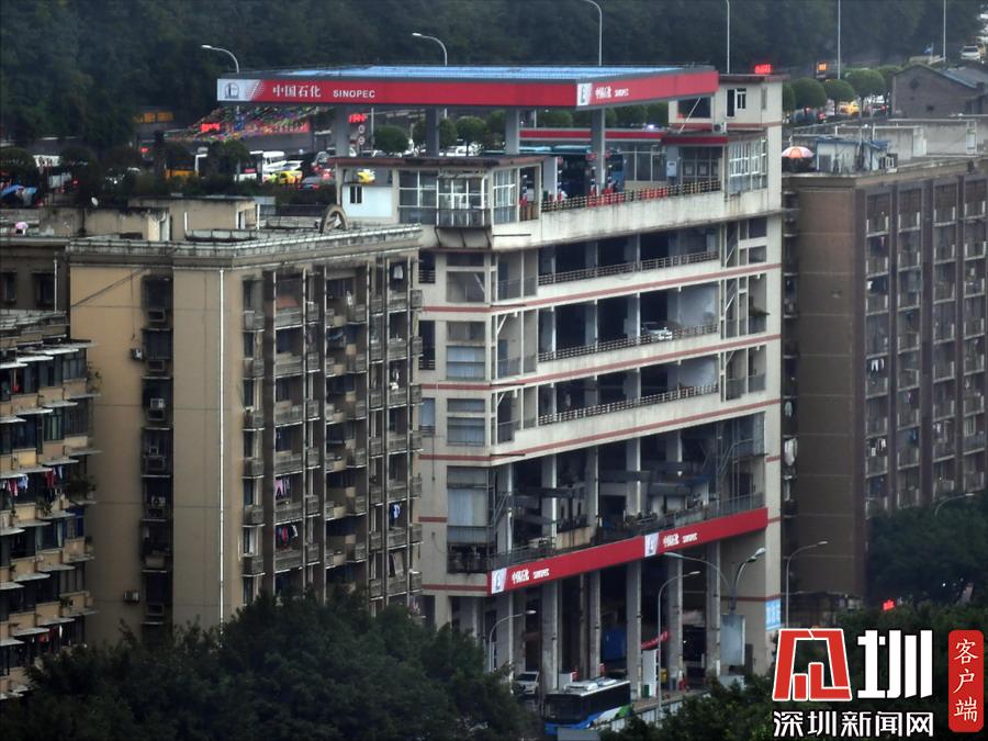 2019年11月24日,重慶渝中區,一棟大樓的一樓是加油站,六樓樓頂還是加油站,讓人稱奇。