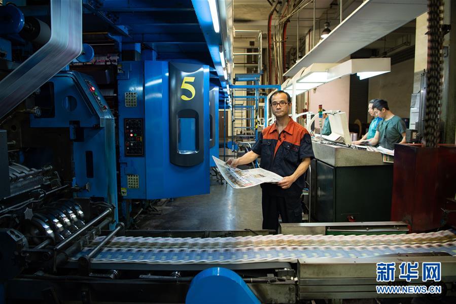 11月27日,澳門日報印刷課副主任袁錦財在車間內,他已經工作了35年,主要負責抽樣質檢當日報紙。 澳門回歸祖國二十年,經濟繁榮昌盛,社會面貌生機勃勃。這二十年的輝煌成就,離不開各行各業普通勞動者的辛勤付出。他們默默無聞,日復一日用汗水與堅守為澳門社會貢獻自己的力量。 新華社記者 張金加 攝