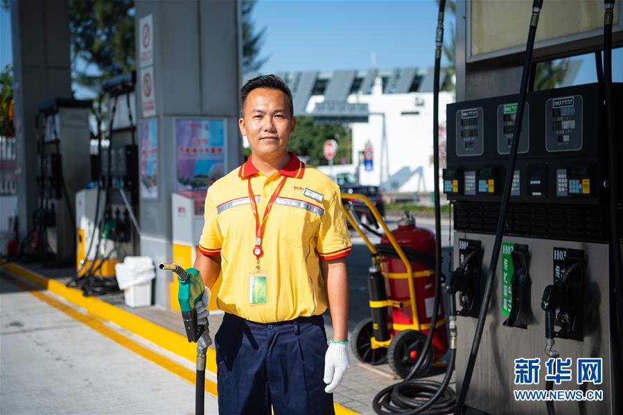 11月25日,澳門南光石油化工有限公司加油員陳健忠在加油站內,他已經工作了3年。 新華社記者 張金加 攝