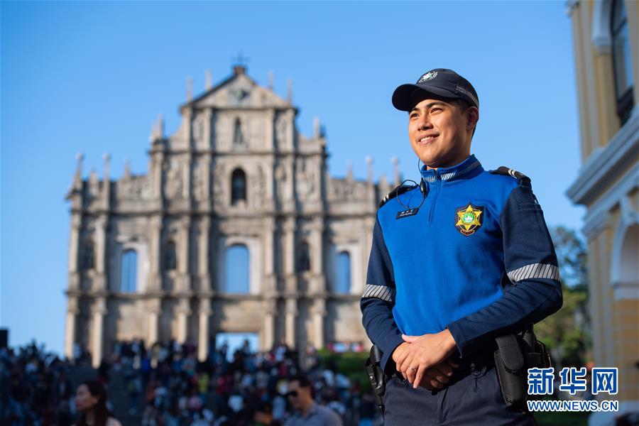 11月28日,澳門治安警察局旅游警察關(guān)天恒在大三巴牌坊附近巡邏,他已經(jīng)工作了2年,主要負(fù)責(zé)維持社會(huì)治安及解答游客問(wèn)題。  新華社記者 張金加 攝