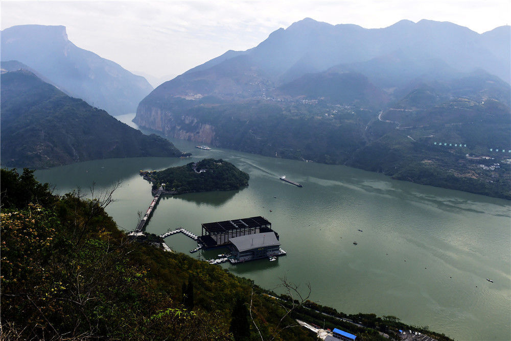 2019年11月2日,重慶,俯瞰三峽蓄水之后的“白帝城孤島”全貌。