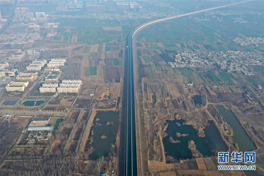 這是12月9日無人機拍攝的南水北調中線總干渠沙河渡槽工程。新華社記者馮大鵬攝