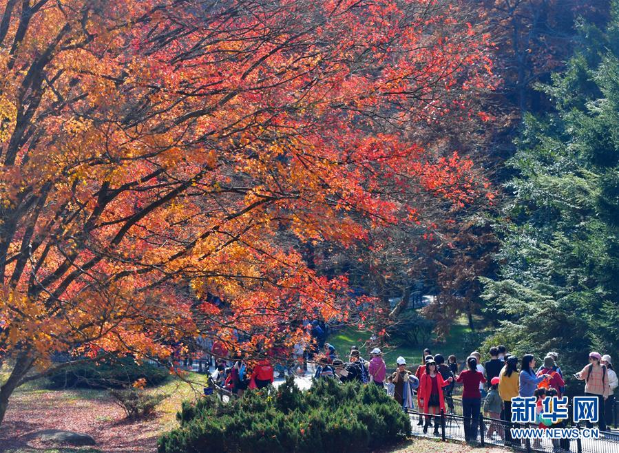 2019年11月3日上午,北京房山區坡峰嶺紅葉節現場,市民觀賞金秋美景。