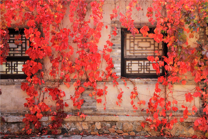 2019年10月30日,北京,古北水鎮秋色正濃,隨處可見的爬山虎蔓莖縱橫,葉子正紅,將水鎮變成了紅葉小鎮,美如畫卷。