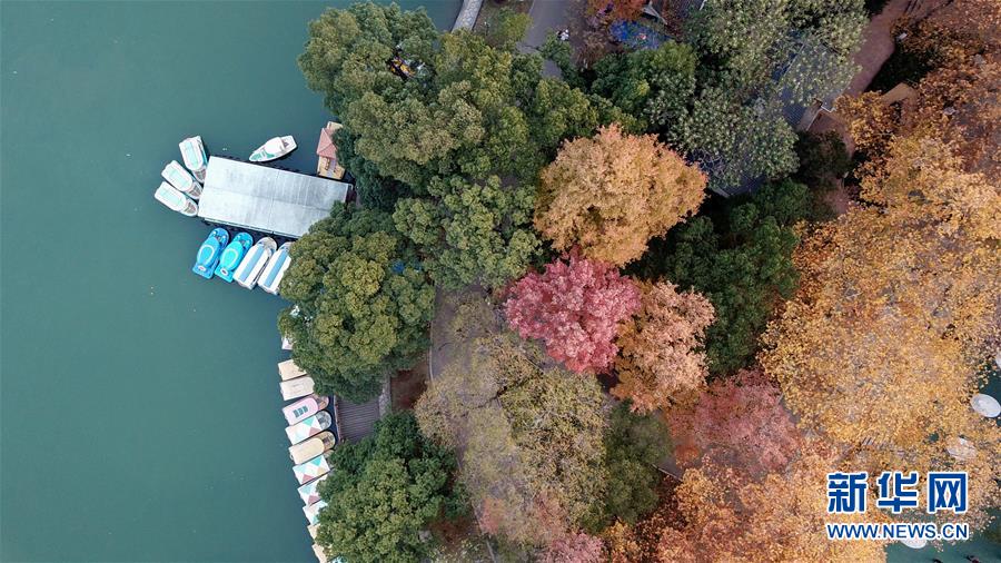 初冬時節,位于湖南省長沙市開福區的湖南烈士公園年嘉湖畔暖陽照耀,色彩繽紛的樹葉與年嘉湖碧水構成一幅美麗的冬日畫卷。