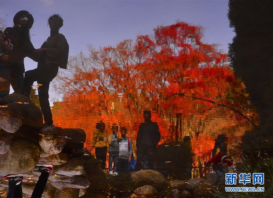 11月17日,游客在廬山植物園內游玩(圖片翻轉180度)。新華社記者張浩波攝