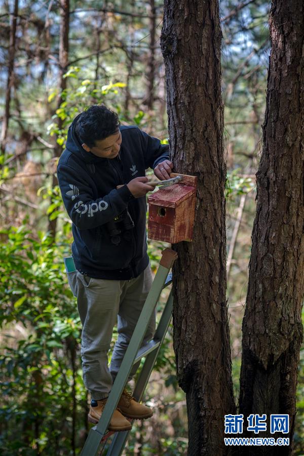羅康在哀牢山的松樹林里查看上一批人工巢箱的鳥類入住情況(12月12日攝)。 31歲的羅康是云南省瀾滄縣人,從事鳥類生態學研究已有8年時間。作為中科院鳥類繁殖學的在讀博士,羅康離開城市,一頭扎進哀牢山深處,以森林為家,與鳥兒為伴。 羅康在研究過程中發現,由于松林內天然樹洞很少,導致食蟲鳥類(主要為洞巢鳥)的繁衍與生存質量受到較大影響。查閱大量資料后,他決定學習西方國家應用比較廣泛、已有100多年歷史的人工巢箱,為這些鳥兒搭建“別墅”。 目前,羅康已安置人工鳥巢500余個,共有遠東山雀、綠背山雀、黃頰山雀等7種鳥類入住,總體入住率約25%。他還在部分人工巢箱里裝上攝像頭,用于研究鳥類的生活習性。 “通過對人工鳥巢里的視頻錄像進行分析,我們發現入住鳥類以松毛蟲喂食幼鳥的比例非常高。”羅康表示,安置人工鳥巢不僅能幫助鳥類在森林中安家落戶、繁衍生息,也能有效防治森林病蟲害。明年一月底前,他將再安置500個人工巢箱。 新華社記者 胡超 攝
