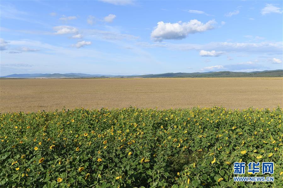 8月28日無人機拍攝的呼倫貝爾市額爾古納市室韋農牧場的田園風光。新華社記者劉磊攝