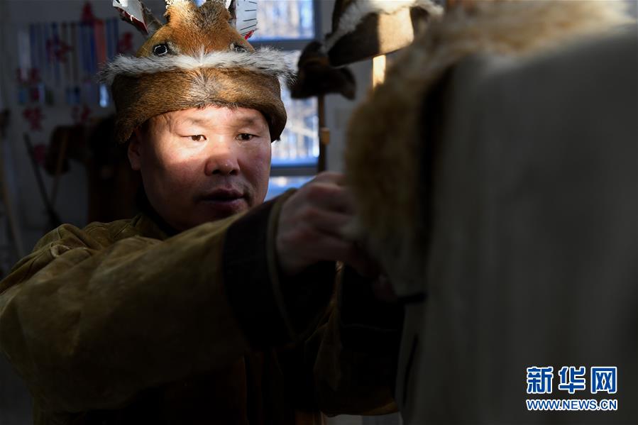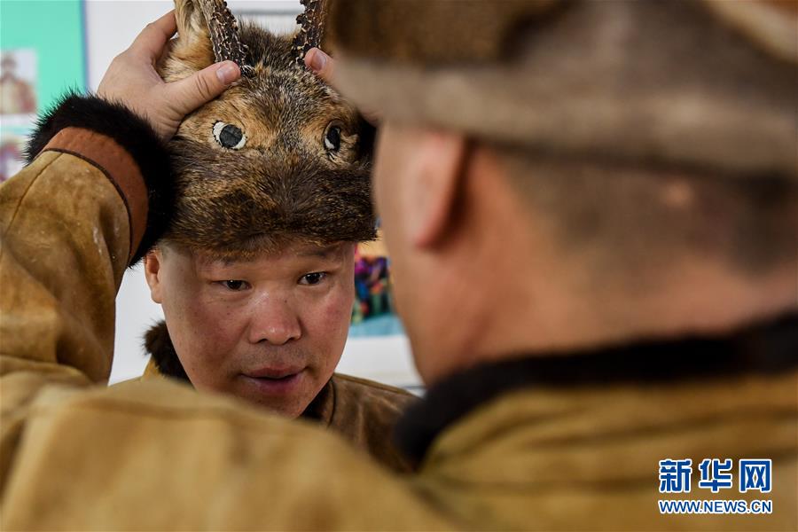 12月10日,在古里鄉非遺傳習所,當地鄂倫春族人在穿戴特色衣帽。新華社記者劉磊攝