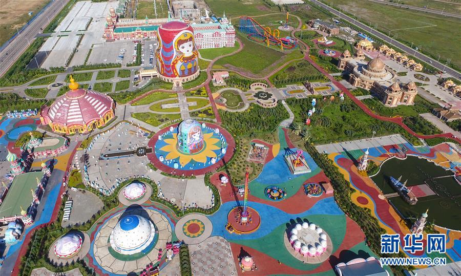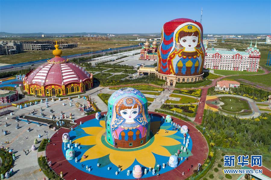 8月29日無人機拍攝的滿洲里市套娃廣場景區。滿洲里市位于呼倫貝爾大草原腹地。新華社記者彭源攝
