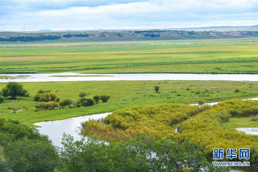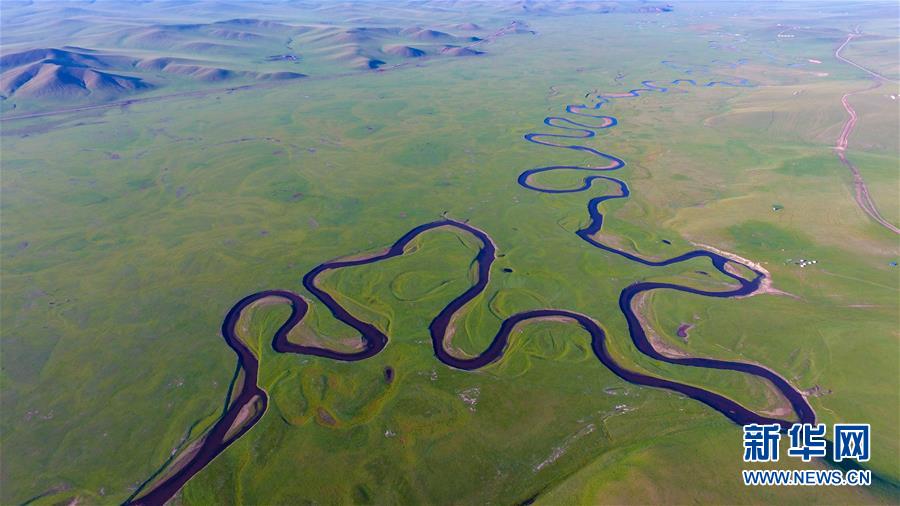 8月26日無人機拍攝的伊敏河。伊敏河流經呼倫貝爾草原。新華社記者彭源攝