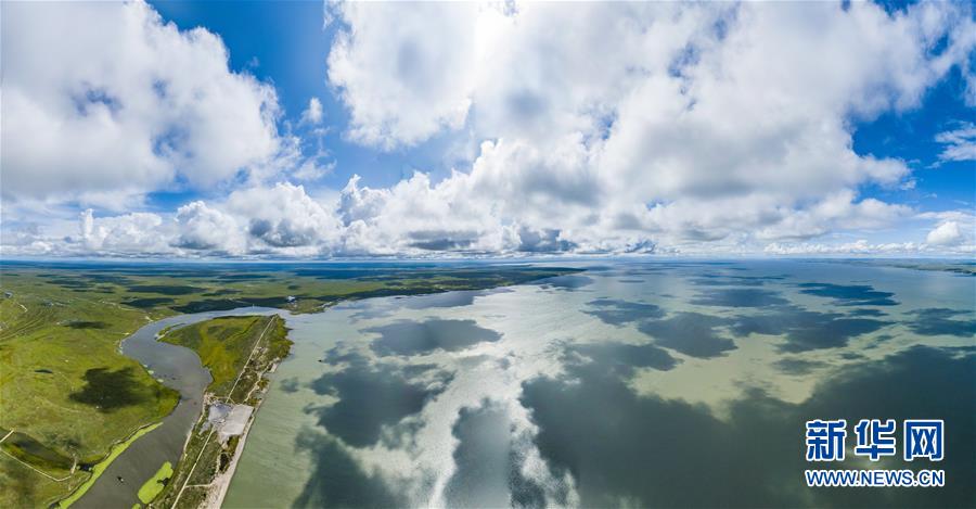 8月28日無人機拍攝的呼倫湖國家級自然保護區。新華社記者任軍川攝