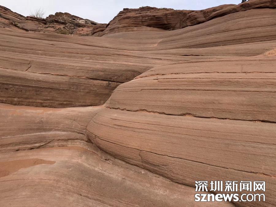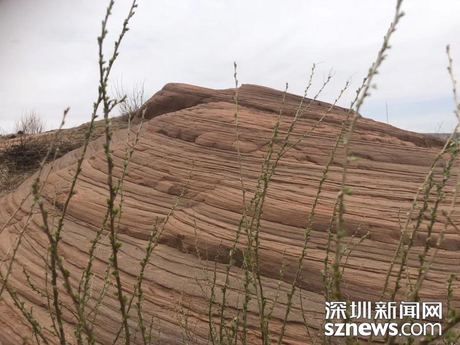 沙丘不斷地被一層層浸漬了地下水的紅沙所覆蓋,天長日久,水中的礦物質把沙凝結成了砂巖,形成了層疊狀的結構。孫衛南攝