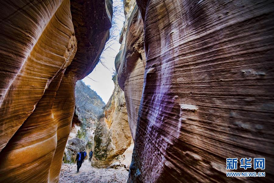12月17日,游人在志丹縣雙河鎮毛項峽谷內游覽。新華社記者陶明攝