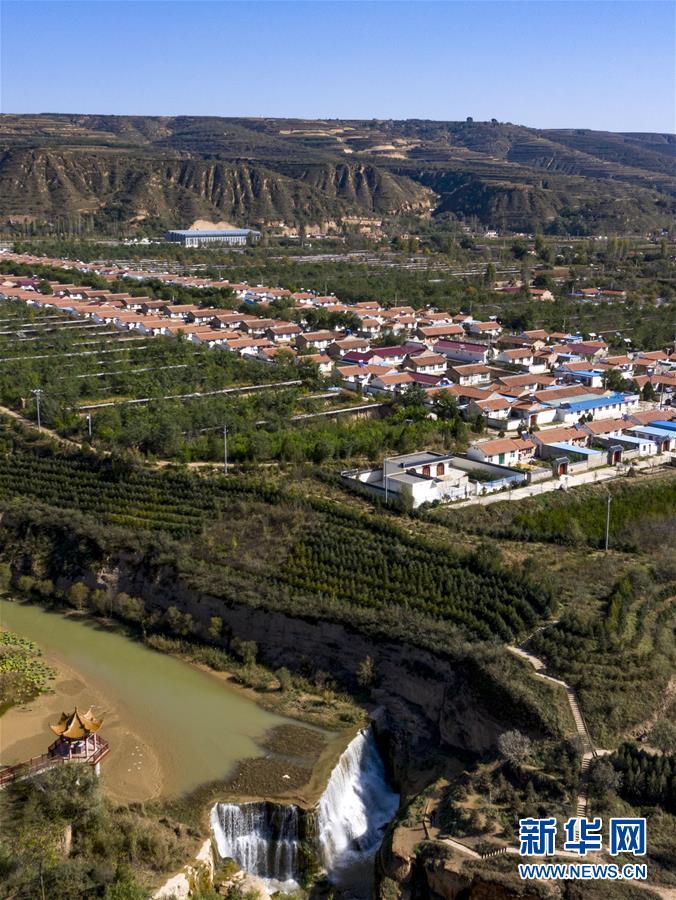 流經(jīng)寧夏固原市彭陽(yáng)縣城陽(yáng)鄉(xiāng)的茹河,因地殼變化和河床運(yùn)動(dòng)形成旱塬上的瀑布,當(dāng)?shù)匾源税l(fā)展鄉(xiāng)村旅游(10月12日無(wú)人機(jī)拍攝)。  新華社記者 馮開華 攝