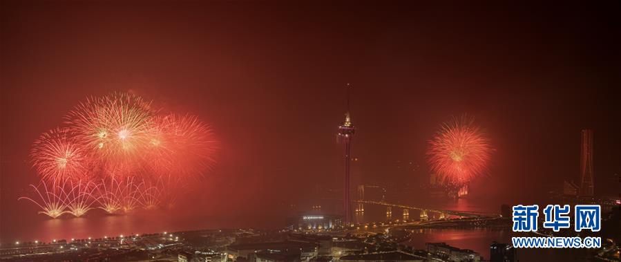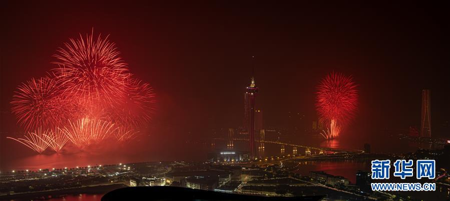12月22日,煙花在澳門上空綻放。當晚,澳門與珠海首次聯合舉行煙花匯演,慶祝澳門回歸祖國20周年。新華社記者張金加攝