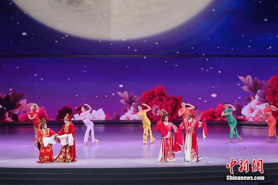 12月19日晚,慶祝澳門回歸祖國20周年文藝晚會在澳門東亞運動會體育館舉行。圖為粵劇名段《花好月圓》。中新社記者謝光磊攝
