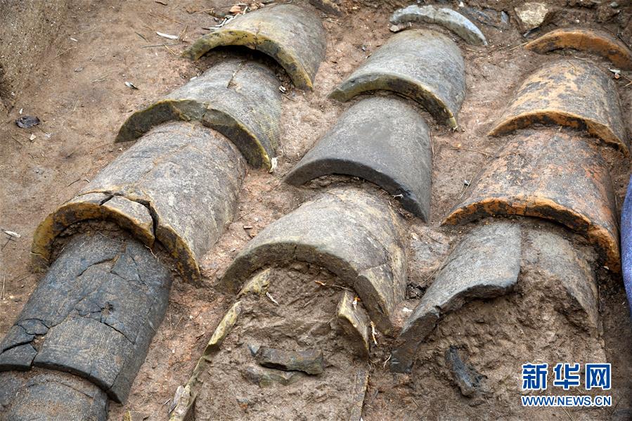 瑯琊臺遺址考古發掘現場的陶制管道(12月21日攝)。新華社記者李紫恒攝