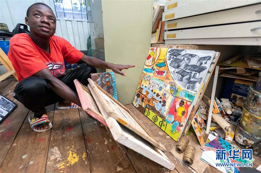 12月20日,在肯尼亞內羅畢庫奧納藝術中心,一名畫家介紹自己的作品。 新華社記者 王騰 攝