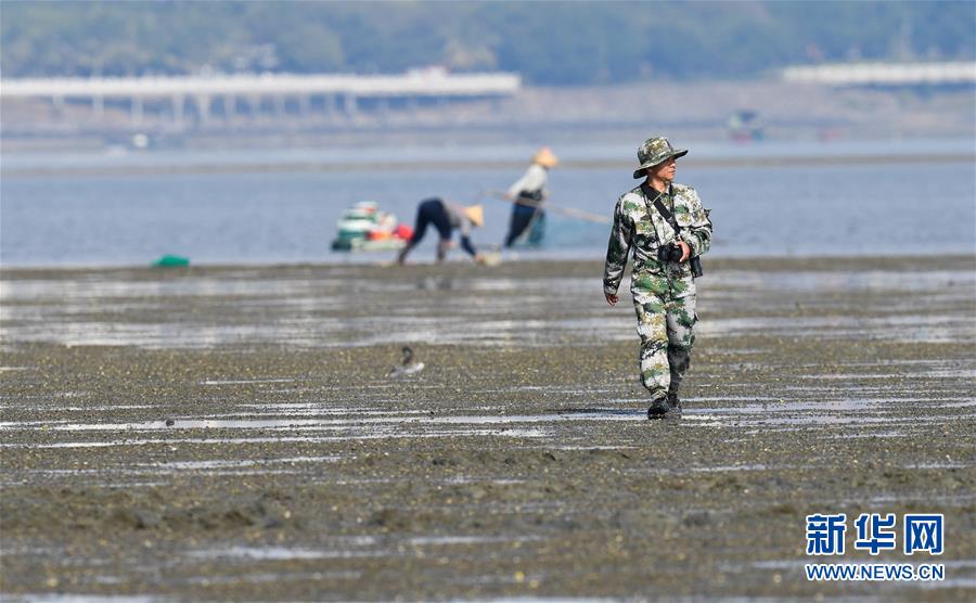 海南儋州新英灣紅樹林市級自然保護區護林員陳正平在保護區內的灘涂上巡護(12月10日攝)。陳正平2010年開始在保護區工作,他將工作發展成愛好,廣泛參加各種培訓和業內交流。他在工作中拍到瀕危鳥類白肩雕出現在海南的照片,這刷新了海南省的鳥種記錄。新華社記者楊冠宇攝