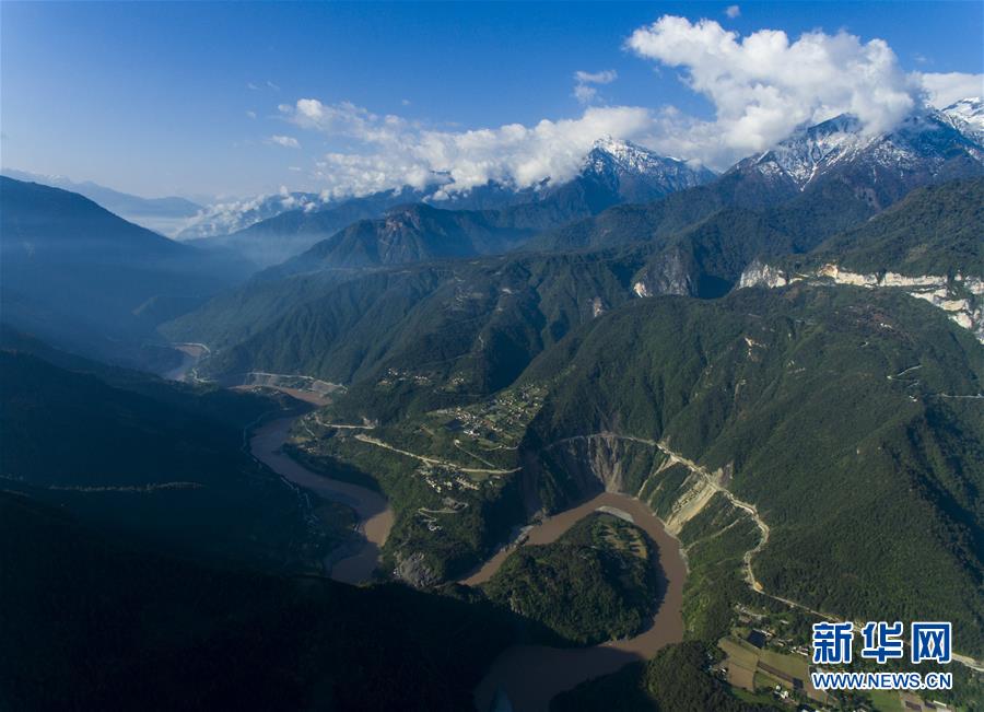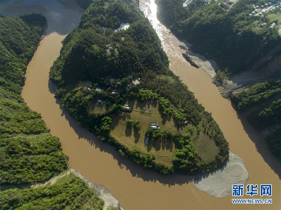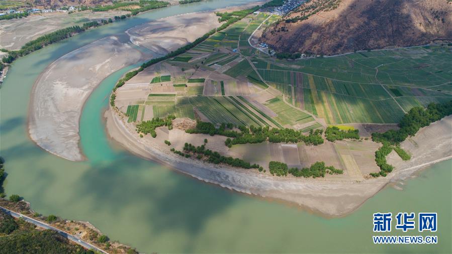 這是4月27日在云南省貢山獨龍族怒族自治縣丙中洛鎮拍攝的“怒江第一灣”(無人機拍攝)。新華社記者江文耀攝