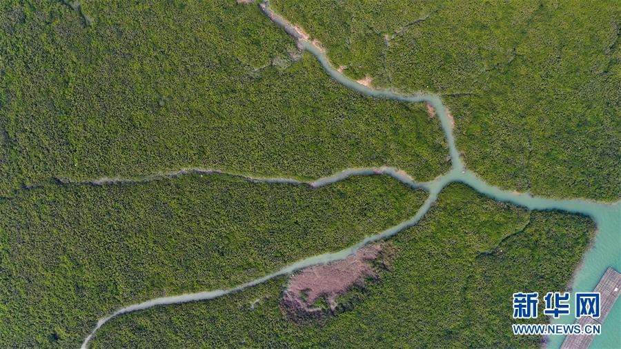 12月21日無人機拍攝的廣西合浦縣黨江鎮更螺圍出海口一景。冬日,廣西廉州灣海域風光別致。新華社記者張愛林攝