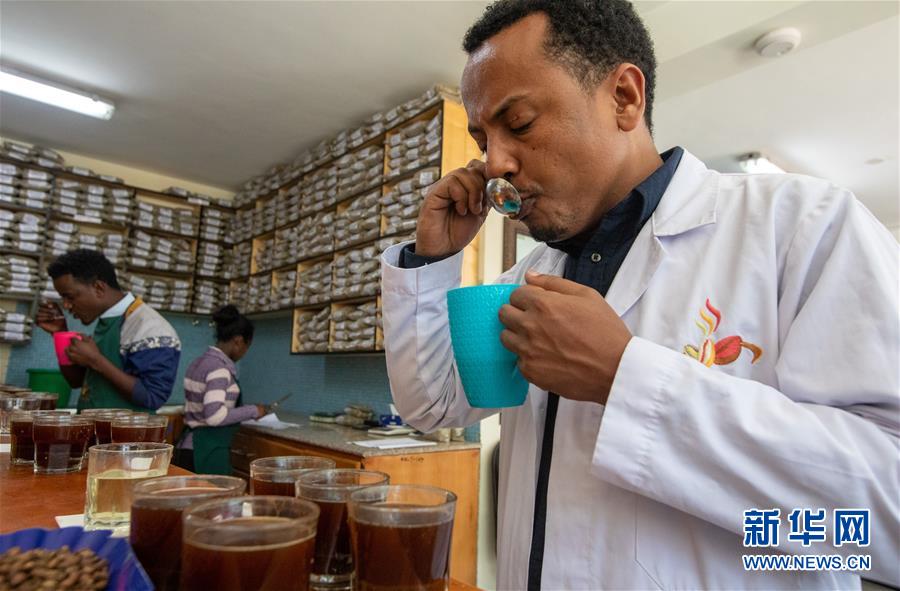 2019年10月23日,在位于埃塞俄比亞首都亞的斯亞貝巴郊外的卡辰什咖啡加工廠內(nèi),卡辰什咖啡質(zhì)量和市場(chǎng)總監(jiān)阿斯納克·卡薩在杯測(cè)室參與咖啡的杯測(cè)??ǔ绞部Х仁前H肀葋喿畲蟮目Х壬a(chǎn)商和出口商之一??ㄋ_表示,中國(guó)市場(chǎng)潛力巨大,埃塞俄比亞咖啡在中國(guó)市場(chǎng)的占有率不斷增長(zhǎng),進(jìn)博會(huì)對(duì)埃塞俄比亞咖啡出口商來(lái)說(shuō)是一個(gè)很好的機(jī)會(huì)。 新華社記者 張宇 攝