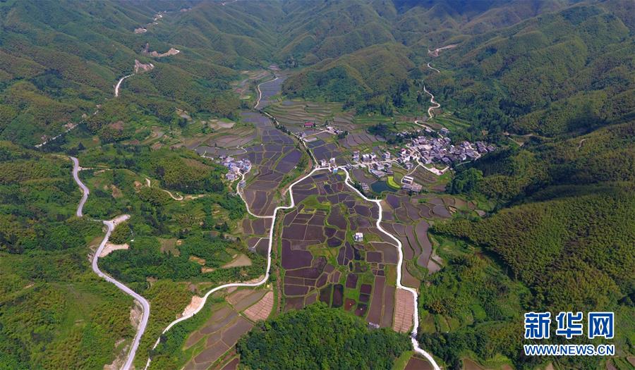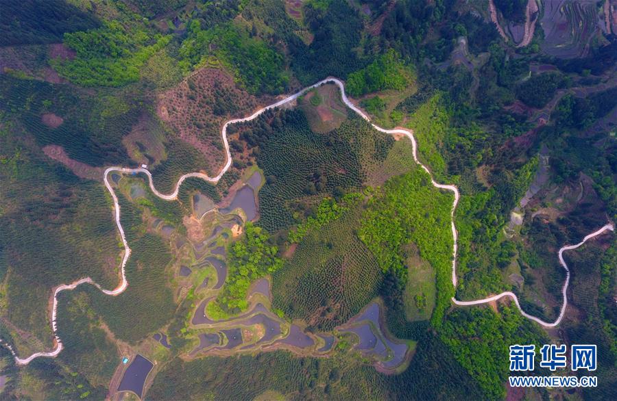這是融水苗族自治縣桿洞鄉黨鳩村烏英苗寨的公路(4月18日無人機拍攝)。新華社記者黃孝邦攝