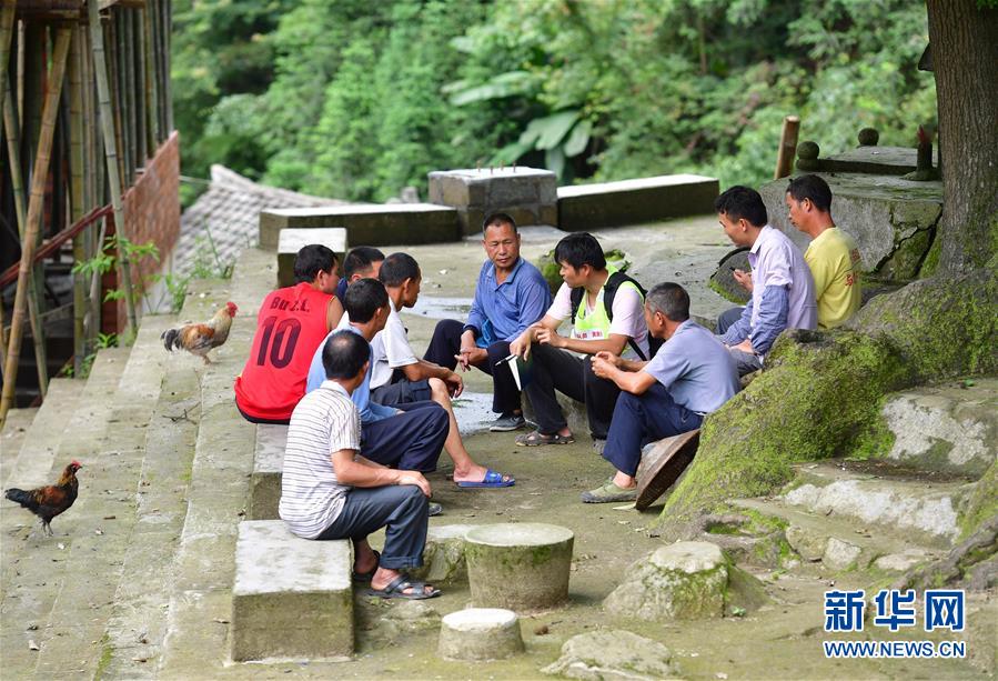 聯合黨支部的黨員們在烏英苗寨開會(7月5日攝)。新華社記者黃孝邦攝