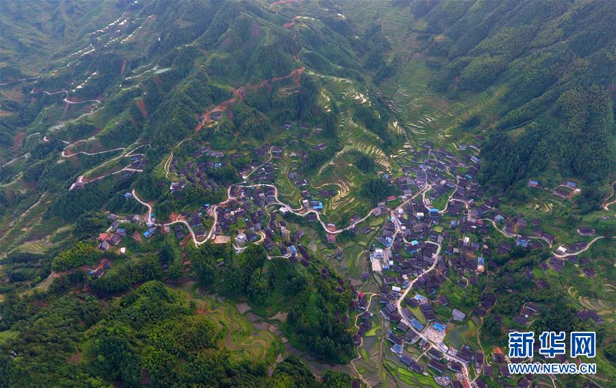 這是融水苗族自治縣桿洞鄉錦洞村的村屯公路(6月18日無人機拍攝)。新華社記者黃孝邦攝