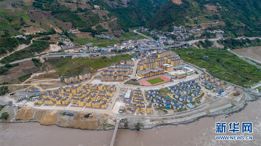 建于怒江邊的大興地鎮維拉壩“珠海小區”已初現規模(6月24日無人機拍攝)。新華社記者胡超攝