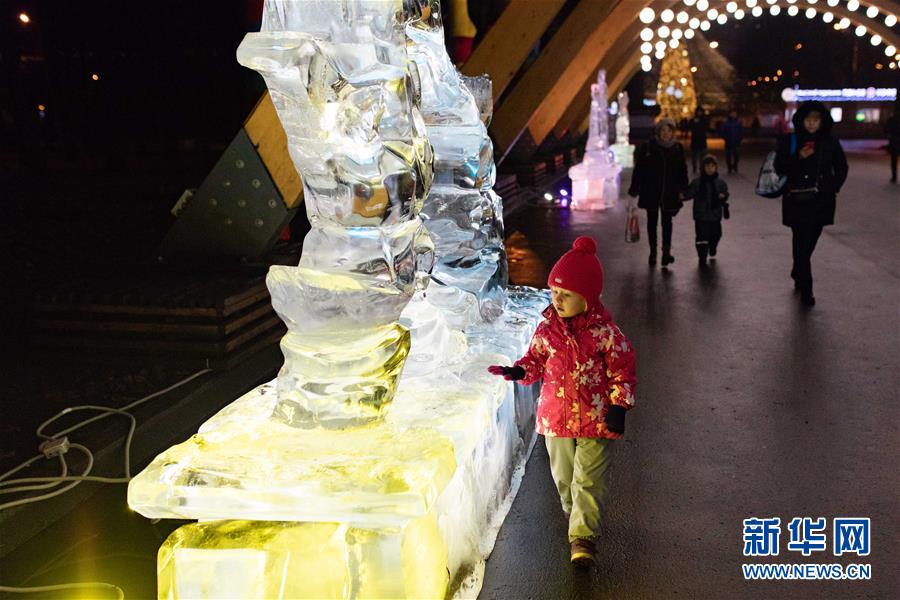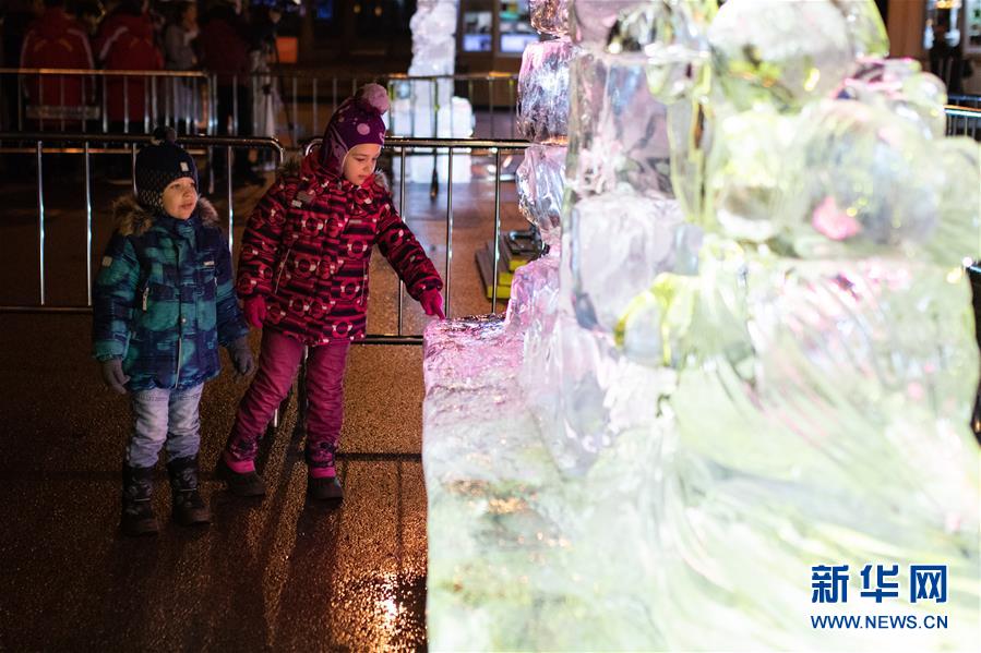 12月24日,在俄羅斯首都莫斯科,小朋友參觀冰雕藝術展。 哈爾濱冰雕藝術展24日在莫斯科開幕,現場展出了哈爾濱大劇院、防洪紀念塔以及莫斯科紅場建筑群等惟妙惟肖的冰雕作品,吸引眾多游客駐足拍照。 參加本次冰雕藝術展的十名冰雕師提前抵達莫斯科,以新中國成立70周年、中俄建交70周年、“一帶一路”倡議等為主題,為莫斯科民眾奉上了精美的新年禮物。 新華社記者 白雪騏 攝