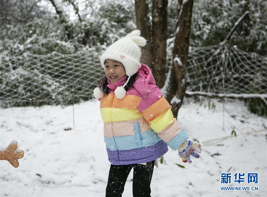 12月28日,小朋友在峨眉山風景名勝區玩雪。新華社記者李夢馨攝