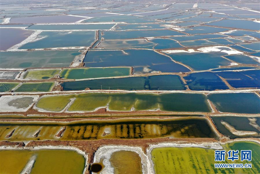 12月27日無人機拍攝的山西運城鹽湖。 冬日時節,從空中俯瞰位于山西省運城市的鹽湖,景色如畫。 新華社記者曹陽攝