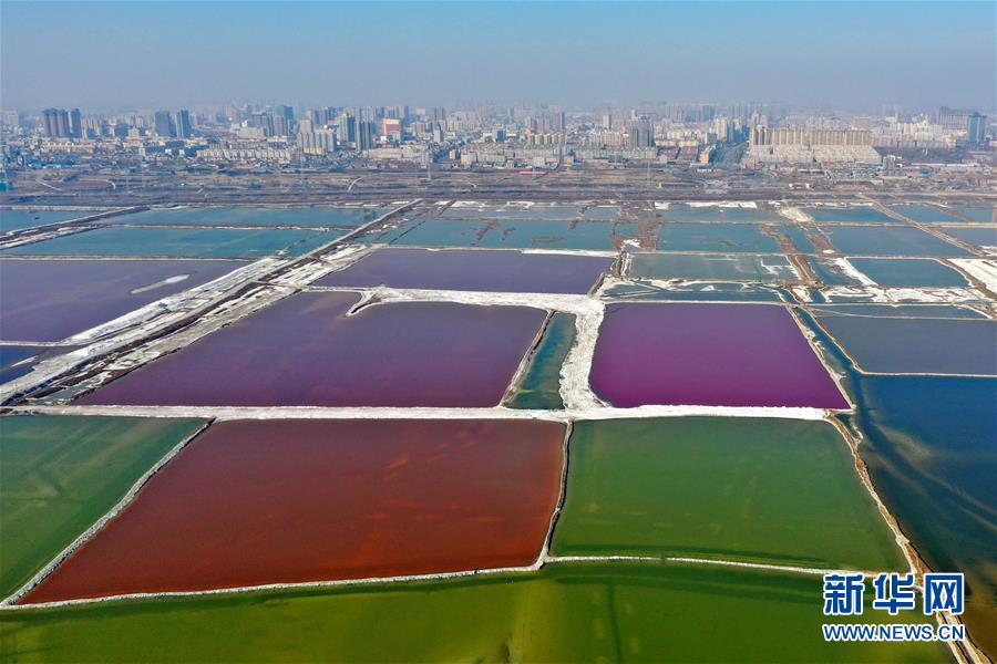 12月27日無人機拍攝的山西運城鹽湖。 冬日時節,從空中俯瞰位于山西省運城市的鹽湖,景色如畫。 新華社記者曹陽攝