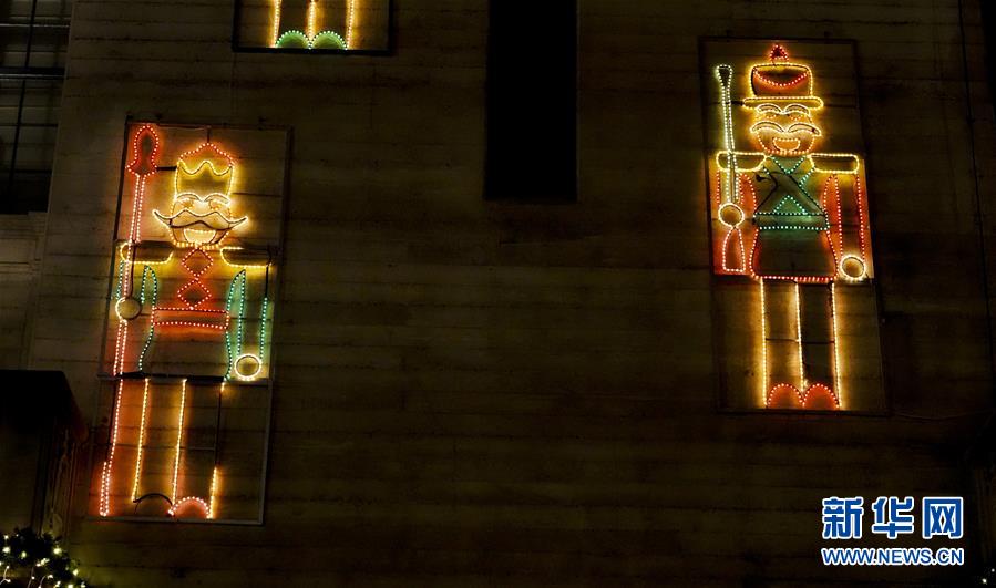 這是12月29日在美國加利福尼亞州里弗賽德燈光節上拍攝的燈光秀。 新華社記者李穎攝