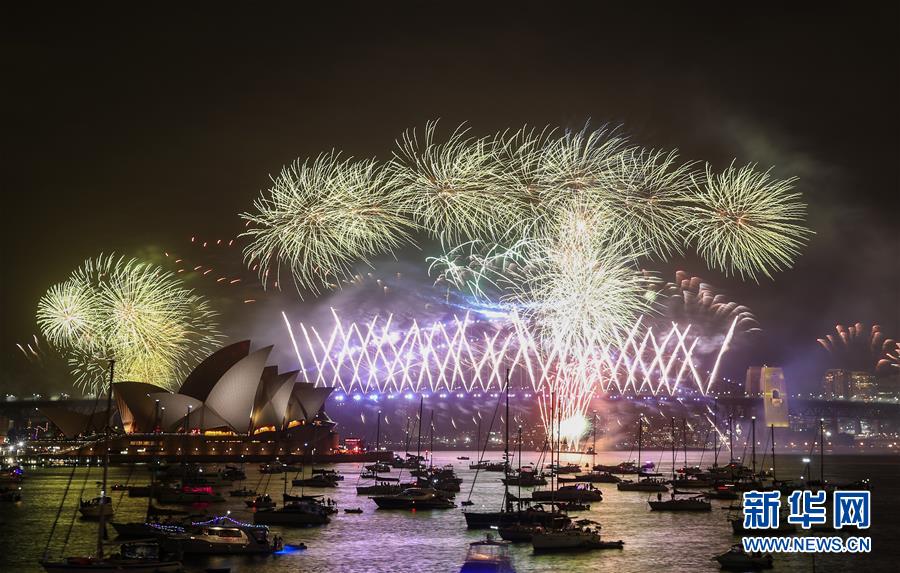 當地時間2020年1月1日,澳大利亞悉尼歌劇院和海港大橋畔燃放煙花,慶祝2020年的到來。新華社記者白雪飛攝