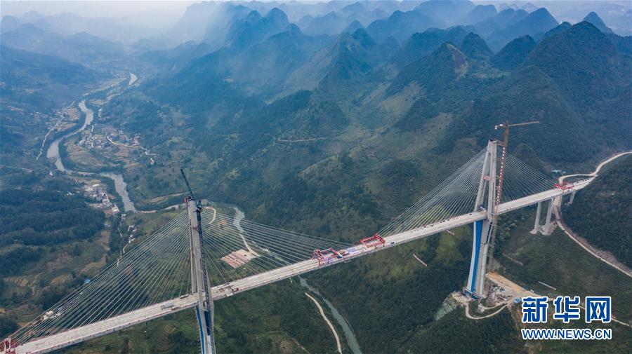 這是9月26日無人機拍攝的成功合龍的平塘特大橋。新華社記者陶亮攝