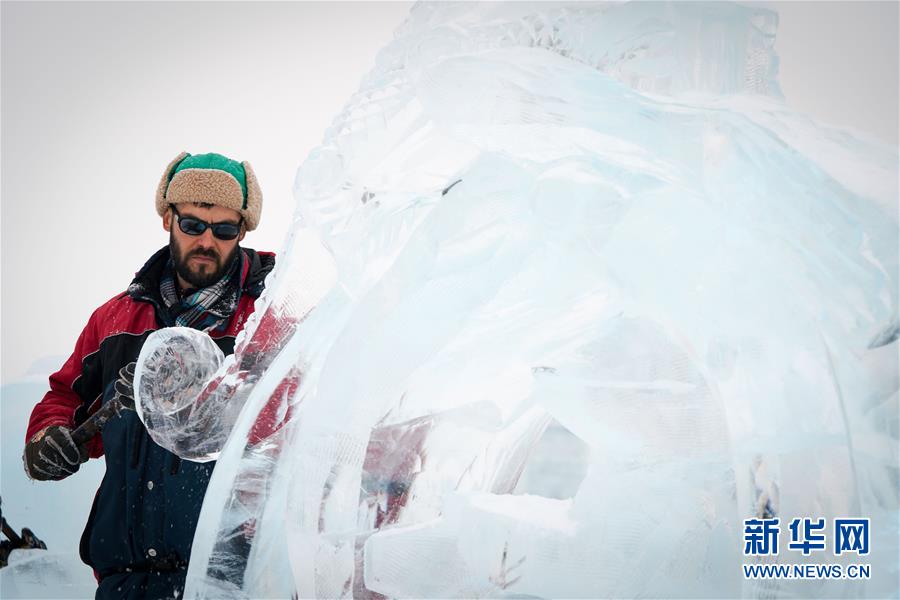 1月6日,參賽者在創作冰雕。新華社記者王松攝