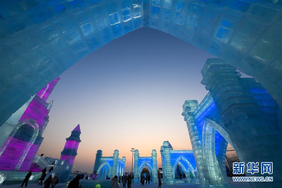 在哈爾濱冰雪大世界內拍攝的冰雕作品(1月8日攝)。新華社記者王松攝
